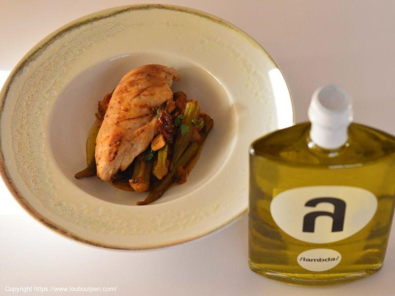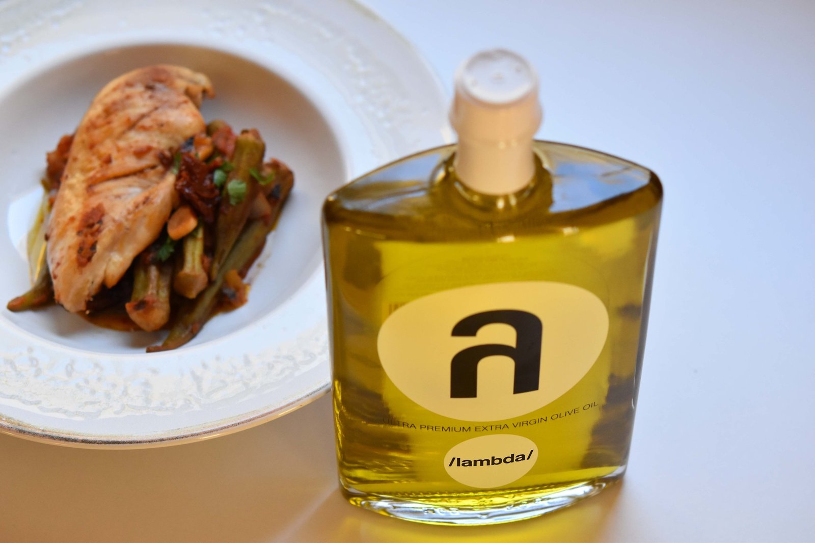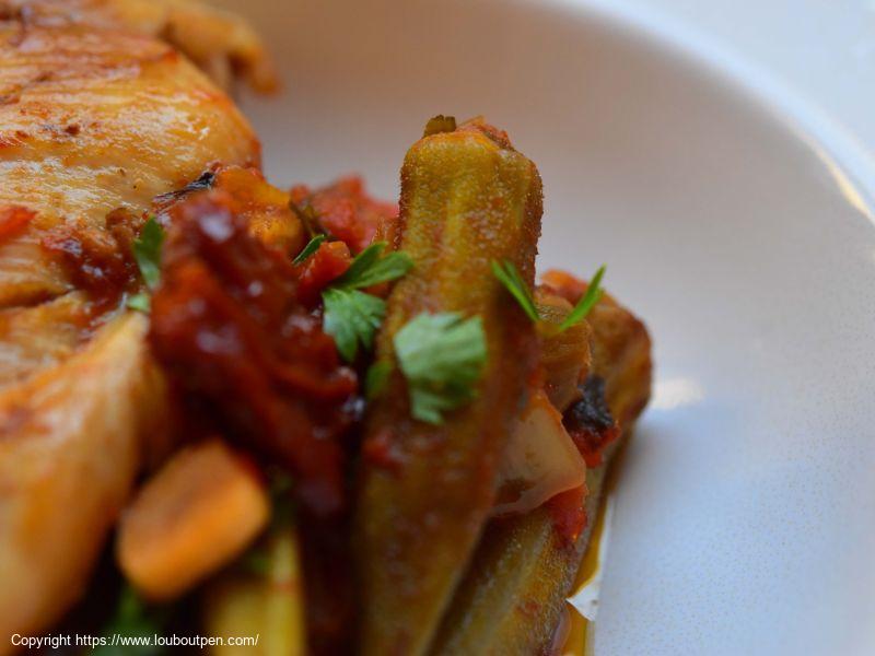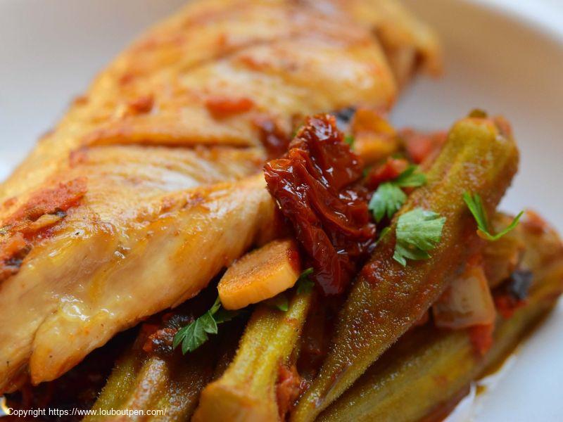 2.Κοτόπουλο με μπάμιες, λ /lambda/ olive oil και λιαστές ντομάτες